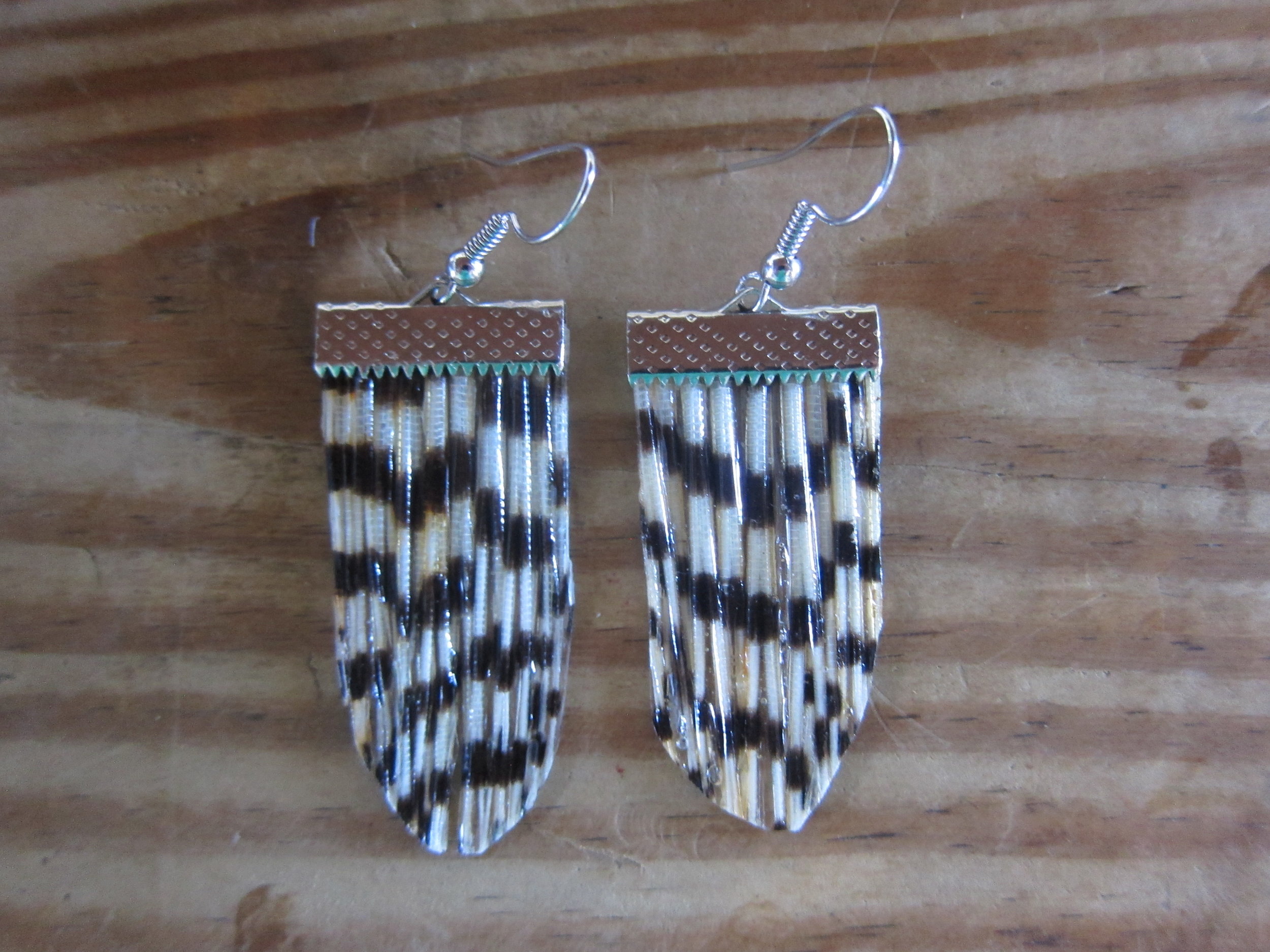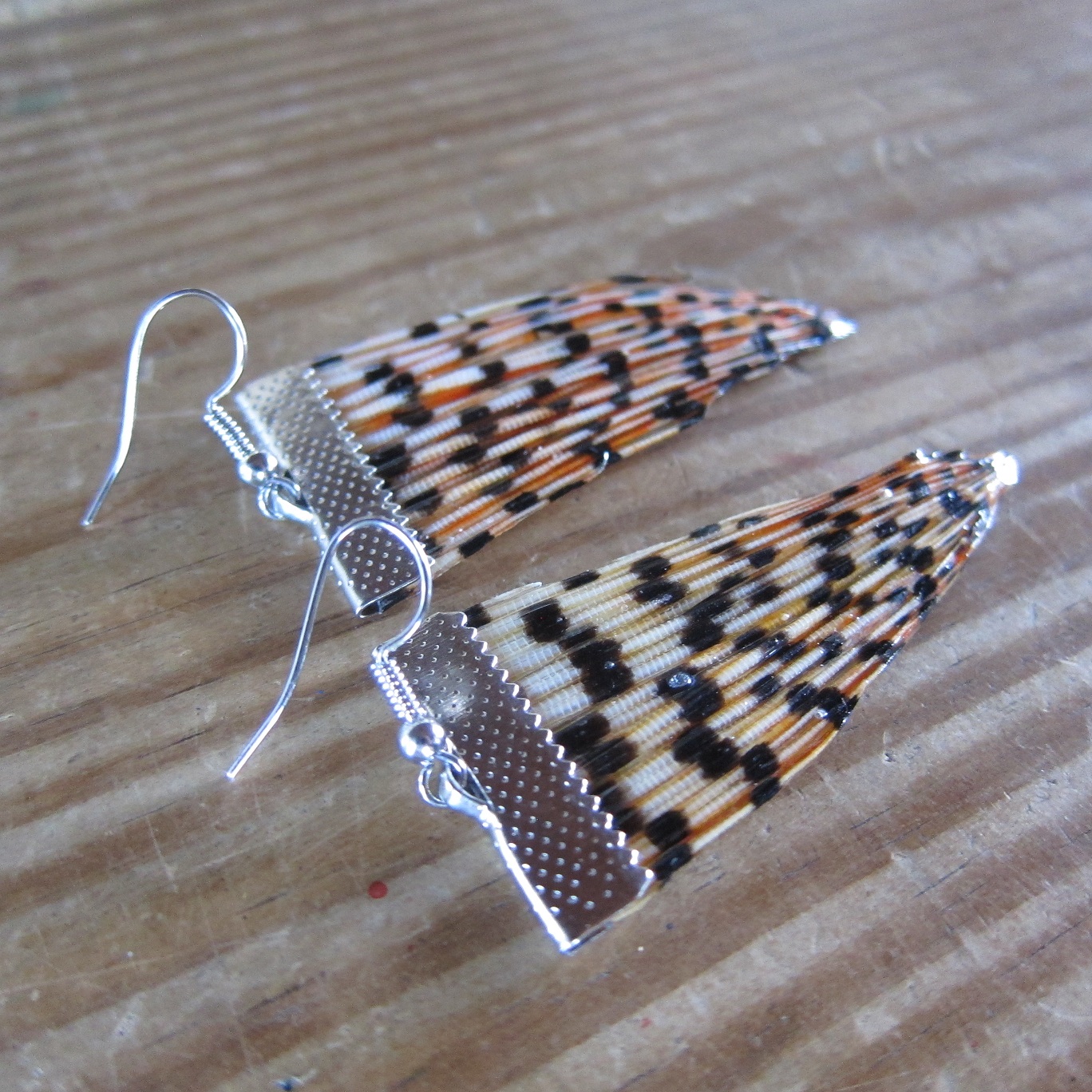 These lovely lionfish fin hanging earrings are made of nickel-free Stainless Steel and the non-venomous lionfish fins. Note: because these natural fins and the coloring is all natural there will be some variation in colors and shape from the photographs. Fins can be trimmed with scissors easily to shorten them if you desire.